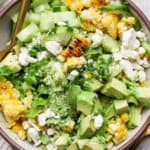 Our simple Avocado Salad is the perfect lunch or dinner that is full of light & fresh flavors! Made with crisp lettuce, grilled sweet corn, fresh herbs, feta cheese, and the best salad dressing. During those warm months of summer you will be making this summer salad on repeat!