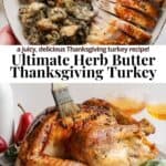 Our tender and juicy Herb Butter Turkey is full of flavor and perfect for your next holiday meal! Use our easy Herbed Butter for Turkey to take your Thanksgiving turkey to the next level. A tried-and-true family favorite that we have enjoyed for years!